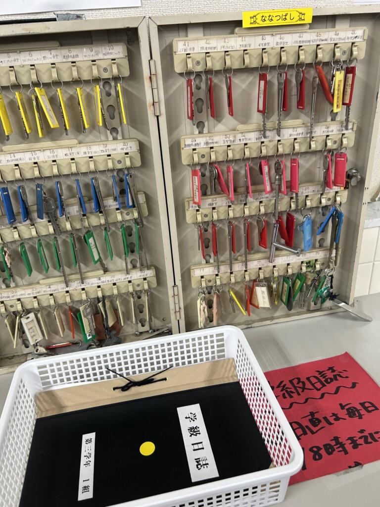 日直のときに鍵開け当番で取りに行った鍵と日誌も再現されています。